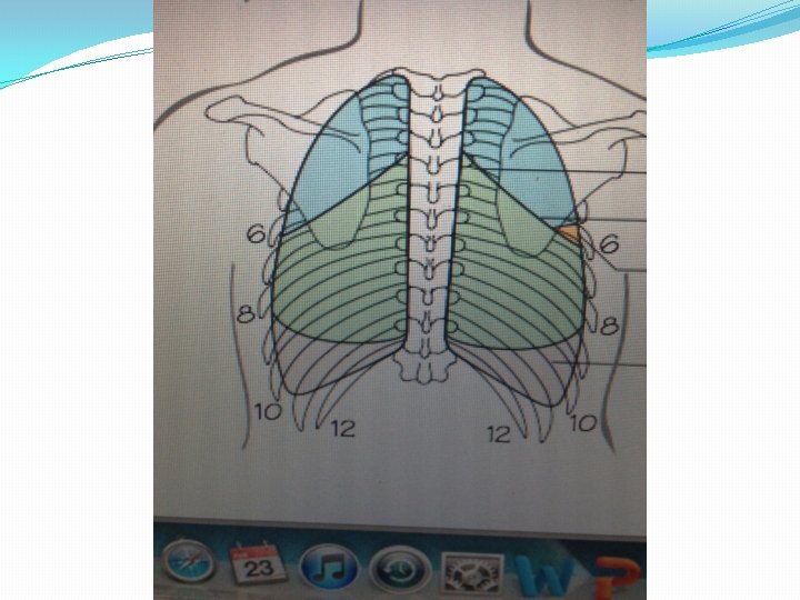 �Escapular (interna, medial). �Infraescapular (Angulo inferior) es el 7 m 0 espacio intercostal. �Basilar, t 12 a 4 dedos por debajo del Angulo escapular inferior, es el punto mas declive del tórax es el espacio de MOURIQUIAND o fondo de saco costo diafragmático que es el punto de extensión máxima pulmonar.