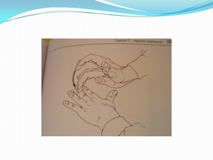 PERCUSION � El tórax esta lleno de aire al percutir se logra un sonido RESONANTE normal. � Un aumento es hiperresonante o hipertimpánico. Ej. en el neumotórax (aire en la cavidad pleural). �Disminución o sonido MATE (hemotórax , derrame pleural, neumonía, atelectásia, etc). Es decir donde este presente algo de mayor densidad que el aire, a mayor densidad, mayor matidez.