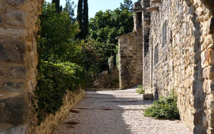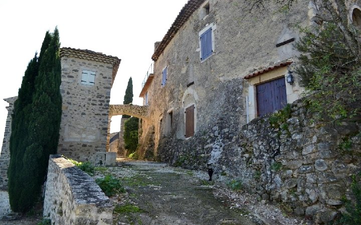 La Laupie Le vieux village de La Laupie est une merveilleuse surprise pour les amoureux de vieilles pierres, dans un site, qui plus est, enchanteur, de près verts, énormes massifs de lauriers roses, et majestueux cyprès parfaitement taillés. Une superbe pierre gris clair entretenue visiblement avec amour, qu’on retrouve sur les façades médiévales ou Renaissance aussi bien que sous forme de murets de pierres sèches. Après la première placette, qui ressemble à une cour où se dressent de sublimes maisons à hautes fenêtres de style Renaissance, vous irez de surprise en surprise, à chaque détour de ses ruelles en escalier, aux gros pavés biscornus. Tous les détails sont soignés et superbes, volets d’un brun authentique, voûtes, sombres passages couverts … Et même les restes de remparts, portions de murs a demi-effondrées sont beaux et restaurés. Situé légèrement en hauteur, La Laupie domine la plaine, sur laquelle se dresse la chapelle Saint Michel, perchée sur sa butte. Bref, La Laupie dégage une atmosphère formidable et inoubliable : on donnerait cher pour y posséder ne serait-ce qu’une toute petite chaumière ! Allez, on y retourne encore une fois !