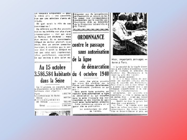 La vie quotidienne des Français bouleversée En 1940 -1941, avec les prisonniers de guerre, la ligne est au coeur du chantage allemand. Les contraintes immédiates se portent évidemment sur les riverains de la ligne de démarcation qui connaissent un statut particulier. Ils deviennent des " frontaliers " d'un nouveau genre, puisqu'ils vivent sur une " frontière " intérieure au coeur de leur pays et de leur terroir. Ils ont reçu des laissez-passer spéciaux qui les autorisent à franchir plus facilement la ligne, afin d'aller travailler la journée dans une zone pour rentrer le soir habiter dans une autre. C'est l'occasion de profiter de ces facilités aux postes allemands pour passer du courrier et des passagers clandestins sous les sièges d'un camion ou dans des tonneaux disposés sur une remorque