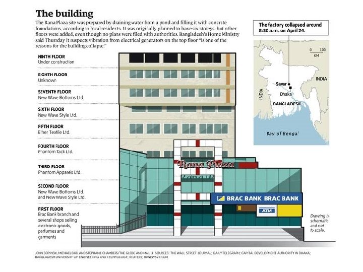 Salud y seguridad en sector de la confección de Bangladesh después de Spectrum 2005 62/80 2006 Spectrum Sweaters & Shahriyar Garments, Savar, Dhaka KTS Textile Industries 2006 Phoenix Garments 22/50 2006 Imam Group /57 2010 Garib & Garib 21/6 2010 Tung Hi Knit and Sweater /20 2011 Hameem Group 28/40+ 2012 Tazreen 115/200 2013 Rana Plaza 1130/2 500 2013 Smart Fashions 7/10 54/60