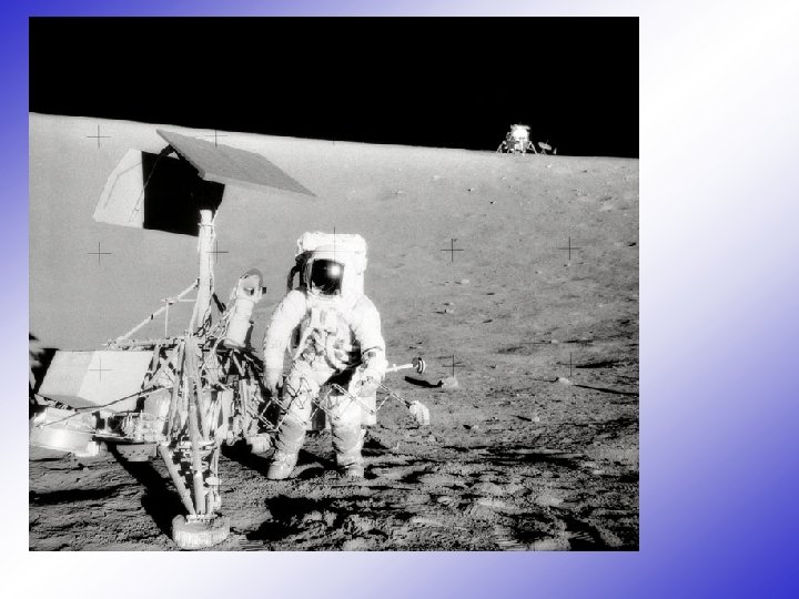 Le sonde “Surveyor” Le sonde Surveyor (nello specifico la Surveyor 6) avevano lo scopo di preparare lo sbarco umano sulla Luna, a cominciare dallo studio dei parametri per l’atterraggio soffice. Oltre all’atterraggio si voleva capire se e come fosse possibile per un Apollo rimanere e ripartire dalla Luna, oltre che ottenere conoscenze di natura scientifica. Dopo l’atterraggio la sonda fu fatta “saltare” due metri e mezzo più lontano riaccendendo i propulsori che servivano a frenare la discesa. È il primo caso di “ripartenza” dalla Luna. LA missione produsse circa 30000 immagini della superficie lunare.