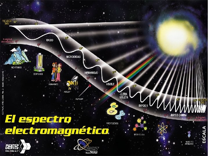 Colores de la luz La luz no es blanca como generalmente la percibimos, si se “descompone” la luz blanca se vería que está formada por 7 colores diferentes que van del rojo al violeta. ◦ Los siete colores que forman la luz blanca son: rojo-naranja-amarillo-verde-azul-añil-violeta Estos colores forman lo que se conoce como espectro visible, es decir, los colores que el ojo humano puede percibir. Los ondas electromagnéticas que están por debajo del rojo se denominan rayos infrarrojos, no se detectan a simple vista. Los ondas electromagnéticas que están por encima del violeta son los rayos ultravioletas, tampoco se pueden detectar con los ojos.