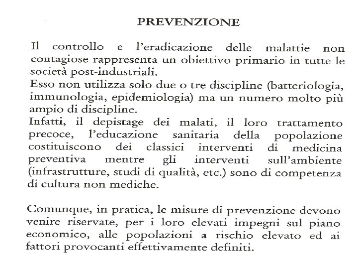 E PREVENZIONE DELLE MALATTIE NON CONTAGIOSE