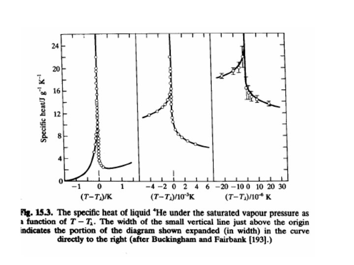 Superfluidita` • • • La superfluidità è stata scoperta da Pyotr Leonidovich Kapitsa, John F. Allen, e Don Misener nel 1937. Lo studio dei superfluidi è chiamato idrodinamica quantistica. La transizione a superfluidio avviene nei liquidi al di sotto di una certa temperatura critica di 2, 17 K, detta punto lambda (Tλ ) perché il grafico del calore specifico dell'elio liquido presenta, a quella temperatura, un "picco", a forma della lettera greca "lambda" Λ. Questa temperatura e` anche detta temperatura critica di condensazione di Einstein, per quanto detto prima. Infatti il termine "superfluidità" è applicato principalmente ai fenomeni osservati in questo elemento a temperature prossime allo zero assoluto. L'elio 4 o He 4, ossia l'isotopo dell'elio più comune sulla Terra, ha una transizione da liquido normale (denominato elio 4 I) a liquido superfluido (elio 4 II) a temperature tra T=2. 17 K a pressione p=0 mbar e T=1. 76 K a pressione p~30 mbar. E` unico ad oggi che l`elio anche allo zero assoluto non sia solido, fatto che va contro alle leggi meccaniche: e` pero` quantisticamente spiegabile con il fatto che le interazioni attrattive tra gli atomi sono molto deboli. Invece l'isotopo fermionico meno abbondante elio-3 diventa un superfluido alla temperatura di 2. 6 m. K, pochi millesimi al di sopra dello zero assoluto ed e` caratterizzato da una struttura con proprietà magnetiche hanno interessanti manifestazioni macroscopiche. Dal 1995, oltre l'elio liquido, troviamo molti atomi alcalini che hanno una transizione superfluida a temperature dell'ordine della decina di nano. Kelvin
