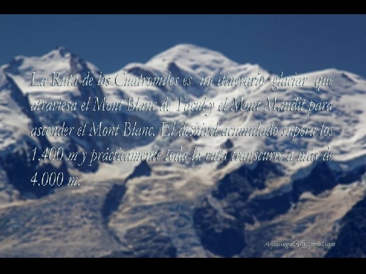 Mont Blanc du Tacul Mont Maudit Les Bosses Ref. Vallot Dôme du Goûter Refugio de Cosmiques La Ruta de los Cuatromiles desde la Aiguille du Midi