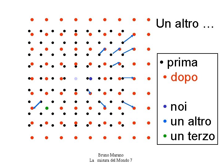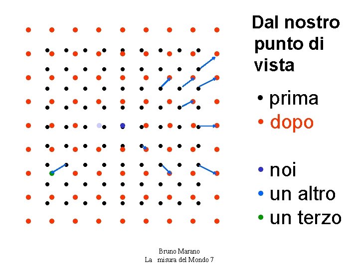 Una verifica: la radioattività naturale consente di datare le rocce • Il decadimento naturale di un nucleo atomico è un evento probabilistico. Di un numero di atomi N(0) presenti inizialmente, ne resta dopo un tempo t un numero N(t) da: N(t) = N(0) • e-t/τ dove τ è il tempo caratteristico. • Il prodotto di decadimento cresce secondo la legge. P(t) = N(0) - N(t) = N(0) • (1 - e-t/τ ) • Spesso si usa il “tempo di dimezzamento” o “di vita media”, che è il tempo t½ , tale che N(t½ ) = N(0)/2. ( t½ = ~0. 7 τ ) • Per U 238 t½ =6. 3 Miliardi di anni per U 235 t½ = 1. 0 Miliardi di anni. • Il prodotto di decadimento è il Pb 206 Bruno Marano La misura del Mondo 7