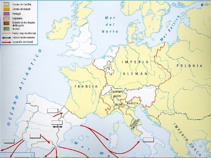 4. ALIANCES MATRIMONIALS. L'aïllament de França mitjançant enllaços matrimonials dels fills dels Reis Catòlics amb els principals regnes europeus, que eren enemics de França. (Joana amb Felip d’Àustria, Caterina amb Enric VIII d’Anglaterra… 5. L'OPOSICIÓ A L'EXPANSIÓ TURCA EN EL MEDITERRANI. En 1480 els turcs van envair el sud d'Itàlia el que va motivar l'enviament de la flota i s’aconseguí la seua expulsió.