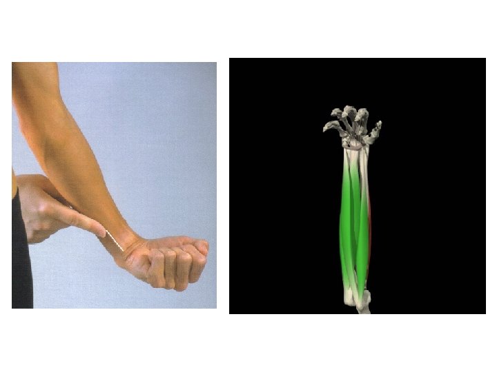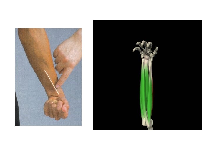 FLEXOR RADIAL DEL CARPO • Origen: Epicóndilo medial del húmero vía el tendón flexor común • Inserción: Base del segundo metacarpiano • Inervación: Nervio mediano • Acción: Flexión de la muñeca, asiste en la desviación radial y asiste en la flexión del antebrazo