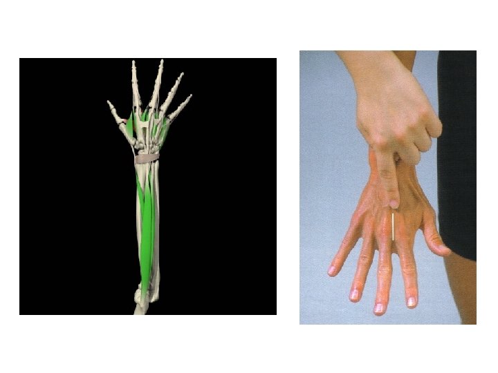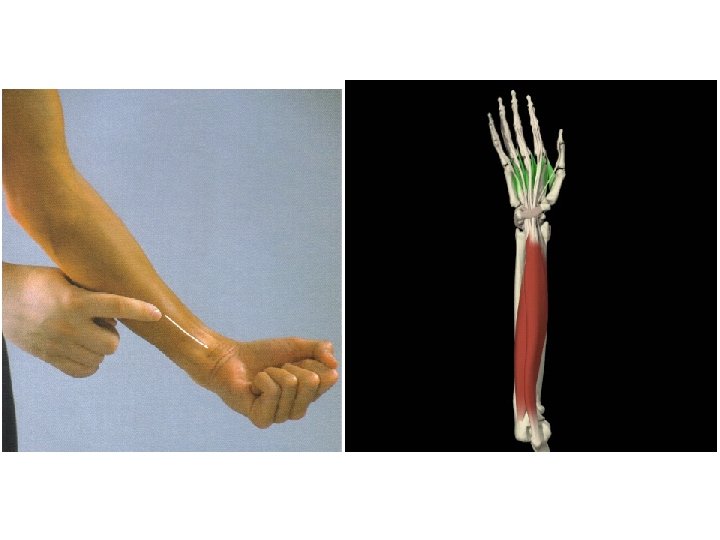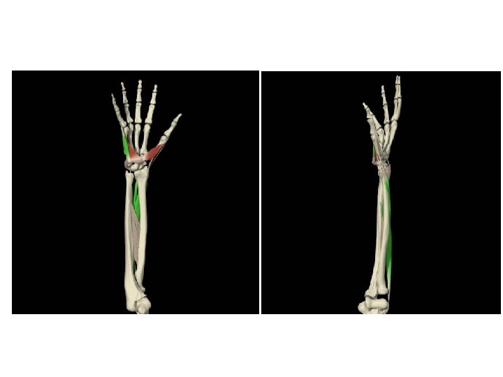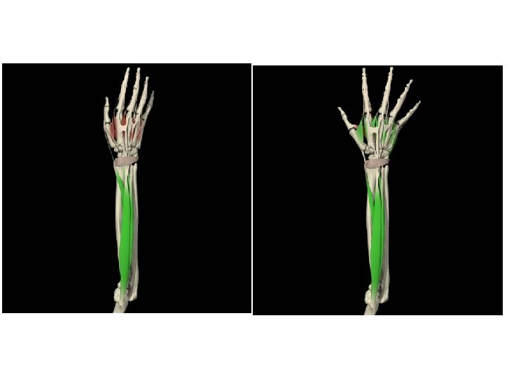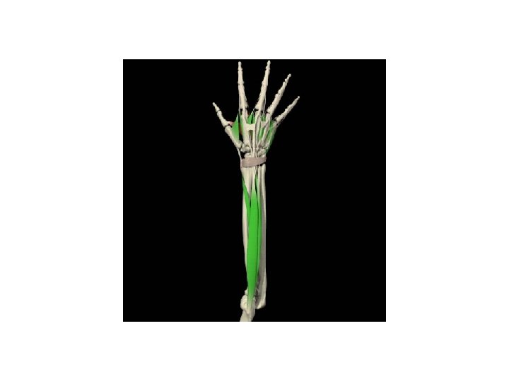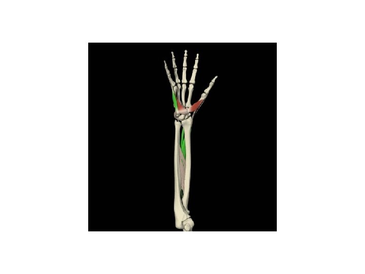 ABDUCTOR LARGO DEL PULGAR • ORIGEN: Aspecto dorsolateral medio de la ulna y membrana interósea • INSERCIÓN: Base del primer metacarpiano • INERVACIÓN: Nervio radial • ACCIÓN: Abducción del pulgar a nivel de la articulación trapeciometacarpiana, extensión del pulgar a nivel de la articulación carpometacarpiana, asiste en la extensión a nivel de la articulación metacarpofalángica y desviación radial de la muñeca