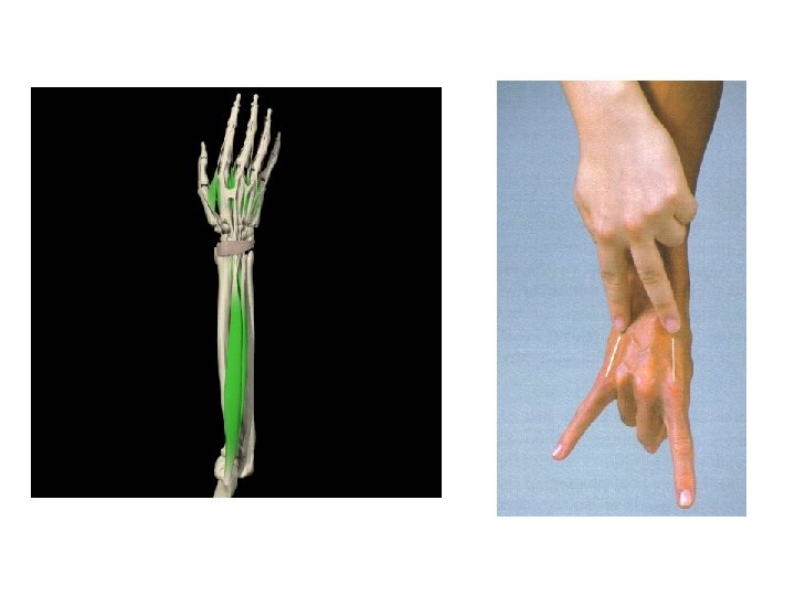 PALMAR LONGO • Origen: Epicóndilo medial vía tendón flexor común • Inserción: Porción central del retináculo flexor y porción superficial de la aponeurosis palmar (El palmar longo asiste a los demás músculos en la flexión de la muñeca y está ausente en aproximadamente el 20% de la población) • Inervación: Nervio mediano • Acción: Asiste en la flexión de la muñeca cuando ya está realizada la flexión de los dedos, también tensa la aponeurosis palmar