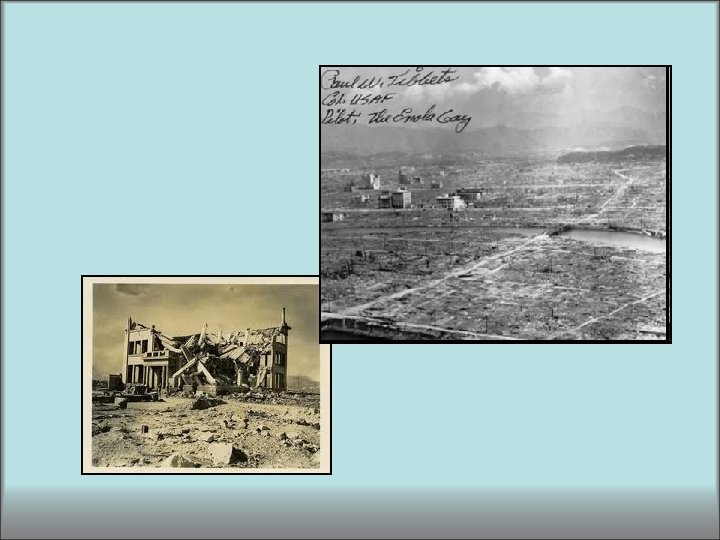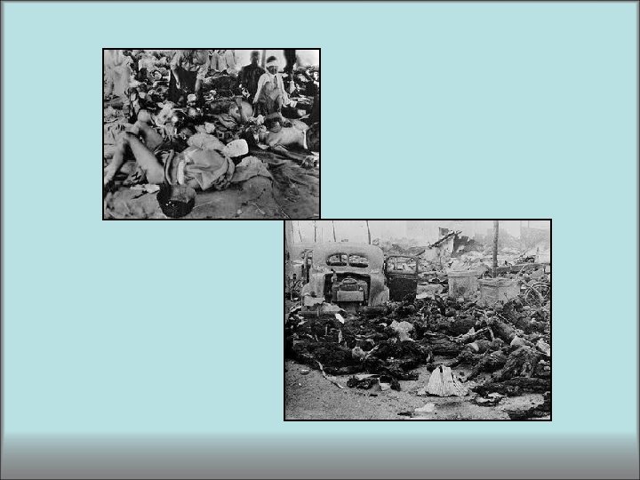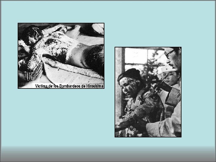 Paralelamente, deben contarse los efectos terroríficos que produjo la recién estrenada bomba atómica de los norteamericanos en la población japonesa dentro del conflicto del pacífico. Este proceso de la Guerra del Pacífico entre los Estados Unidos y Japón, tuvo en el marco asiático consecuencias tan devastadoras y terroríficas como la segunda guerra mundial en Europa. Las dos bombas atómicas de agosto de 1945 tuvieron un efecto de horror inmediato en toda la población mundial, las imágenes transmitidas alrededor de todo el globo hacían real una posibilidad que hasta ese momento sólo pertenecía a la ciencia ficción: LA EXISTENCIA DE UN ARMA CAPAZ DE ACABAR CON EL MUNDO QUE CONOCEMOS.