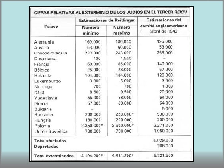 De todos modos, la mayor cifra de muertos, no combatientes, se debe en gran medida a la matanza hitleriana de judíos: el nazismo liquidó sistemáticamente, en una -solución final-, de 5. 5 a 6 millones de judíos alemanes u originarios de los países ocupados del III Reich. ” GRIMBERG, Carl. Revista Bohemia: Historia Universal / Segunda Guerra Mundial. Nro 39. P 91.