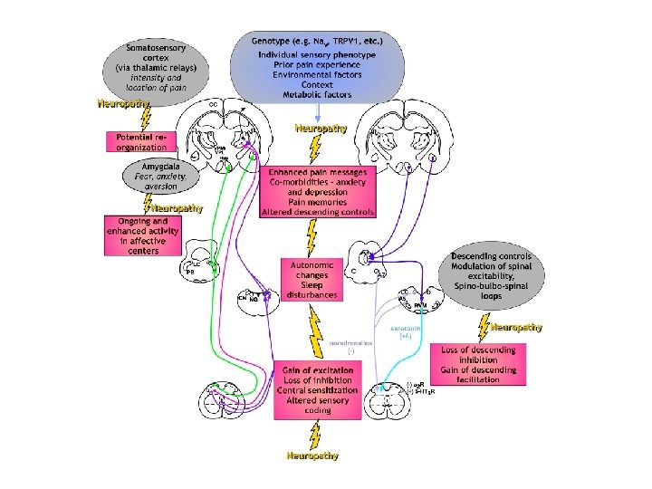 Etiologies de la douleur neuropathique • • Atteintes dégénératives de la moëlle Zona Syndromes de compression Sida Chirurgie (thoracotomies, mastectomies) Amputations DIABETE sucré