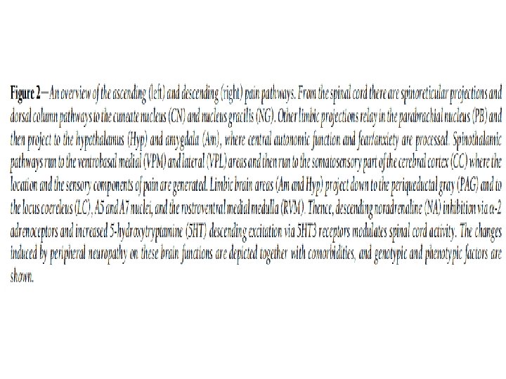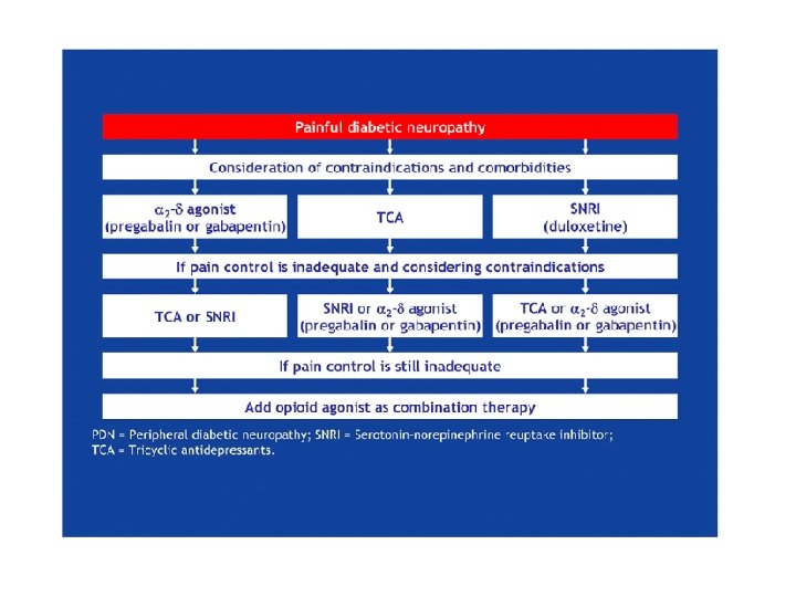 Traitement: combinaisons • Très peu d’études • - Données svt + Effet anti-douleur additionnel ou synergique Doses moindres donc moins d’E. S Questions sur coût, compliance, risques • 2012: étude COMBO-ND Placebo Duloxetine Pregabaline Association