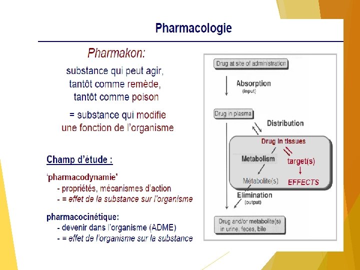 La pharmacologie Pharmacodynamie Action du médicament sur l’organisme Pharmacocinétique Action de l’organisme sur le médicament