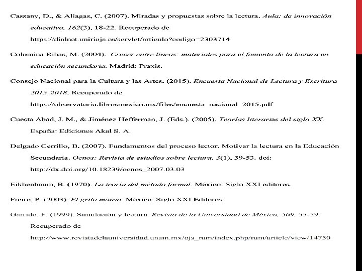 Planteamiento del problema § PISA (2015), en compresión lectora, México obtuvo 423 puntos, 70 puntos por debajo del promedio estipulado por la OCDE de 493 puntos. § La Consejo nacional para las (2015): el 36. 9 % de la población entre 12 -17 años de edad considera la lectura como una de sus pasatiempos. Problema: Lectura utilitaria § Giroux (1997) Alfabetización deficiente § Escuela Secundaria Técnica No. 105 de la localidad de Xalapa, Veracruz: es un grupo de tercer grado, con 39 alumnos de entre 15 y 16 años de edad. La mayoría del grupo (89%) no reconoce la lectura como una actividad de ocio y no puede identificar tres libros que los hayan marcado personalmente.