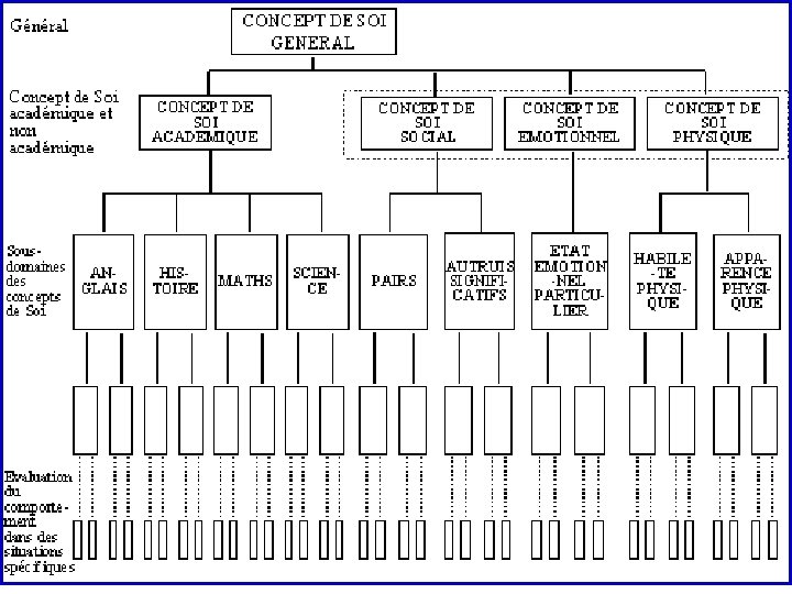1. Le soi est hiérarchiquement organisé. 2. Les perceptions de soi présentent une stabilité en lien avec leur niveau dans la hiérarchie. 21. Plus on descend dans l’arborescence plus les perceptions deviennent spécifiques et changeantes ( « des états » ).