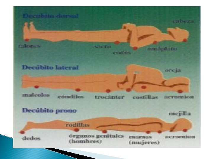 LOCALIZACIONES �Pueden aparecer en cualquier área de piel que cubra prominencias óseas. �En posición de sedestación, las zonas más afectadas son OMOPLATOS y TUBEROSIDAD ISQUIATICA. �En Posición de decúbito(acostado):