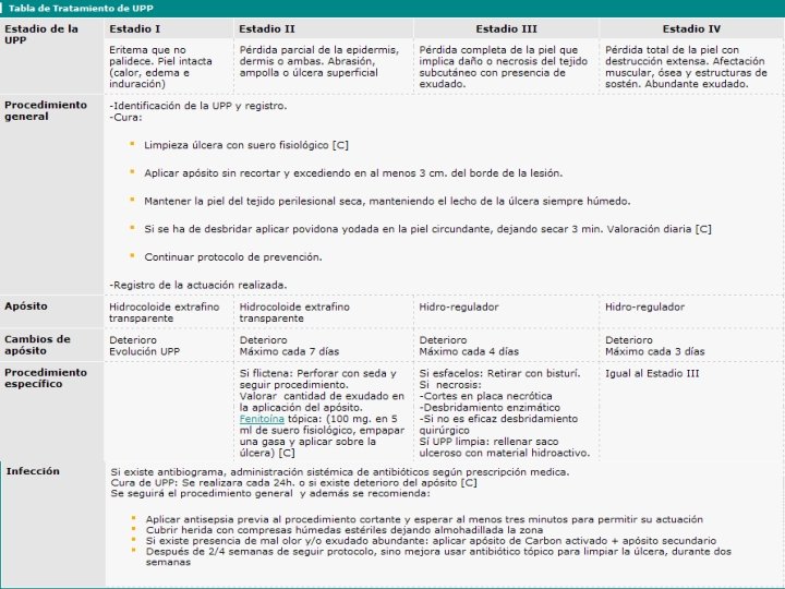 ESTADIOS DE LAS UPP ESTADIO III �Pérdida de solución de continuidad de la piel. �Lesiones tipo cráter. , profunda � Escara dolorosa. �Se afecta incluso el tejido adiposo o tej celular subcutáneo. �Aparece necrosis.