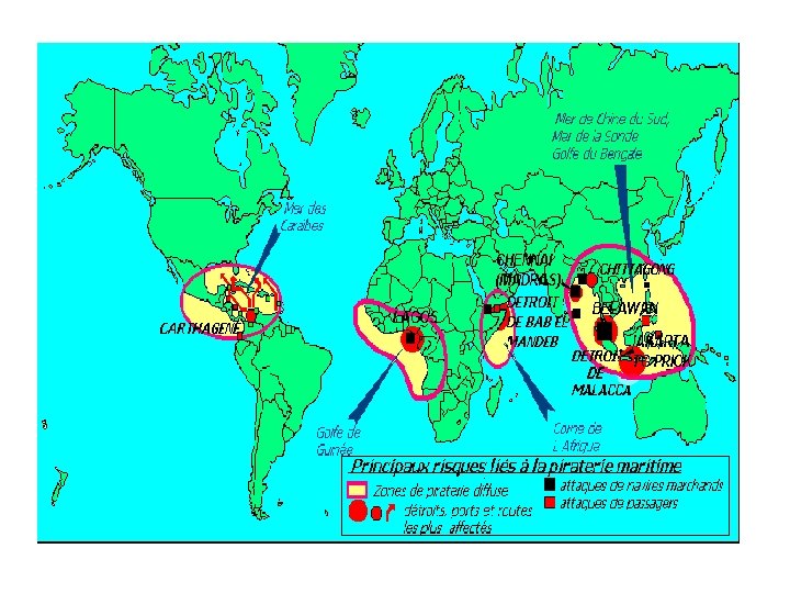LA DIFFUSIONE IERI Le aree considerate ad alto rischio perché infestate dai pirati erano diverse. Tra queste, il Mar dei Caraibi, la zona dello stretto di Gibilterra, il Madagascar, il Mar Rosso, il Golfo Persico, la costa indiana di Malabar e tutta l'area tra le Filippine e l'Indonesia, dove spadroneggiavano i pirati filippini. Il Mar Cinese Meridionale ospitava la più numerosa comunità di pirati, circa 40. 000 all'inizio dell'Ottocento, e la più temuta per le atrocità di cui si rendevano responsabili. I mari del sud della Cina sono anche oggi come nel passato, quelli in assoluto più pericolosi.