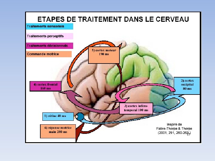 Les structures corticales mises en jeu • L’importance du cortex préfrontal • Sirigu et al. (1995) montrent incapacité de patients cérébrolésés au niveau du cortex préfrontal de proposer des actions dans un ordre chronologique correct. • Ex: allumer une cigarette