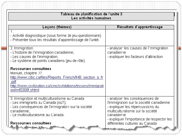 Pistes de réflexion • Quels éléments devront être enseignés et évalués au cours de l’unité d’apprentissage afin que les élèves soient en mesure de réussir la tâche? • Qu’est-ce qui devra être enseigné de façon explicite? • Quelles sont les ressources qui pourront soutenir l’enseignement et l’apprentissage de cette unité d’apprentissage? • Comment savoir si chaque élève aura appris? • Quelles sont les connaissances préalables à l’unité d’apprentissage?