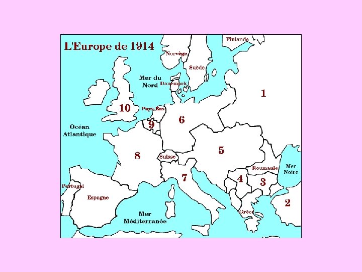 L’Europe était très fragile en 1914 • à cause de la concurrence industrielle entre la France, l’Allemagne et la Grande Bretagne • à cause de la situation des colonies • à cause du Moyen-Orient avec la Turquie mais en particulier…………. . .