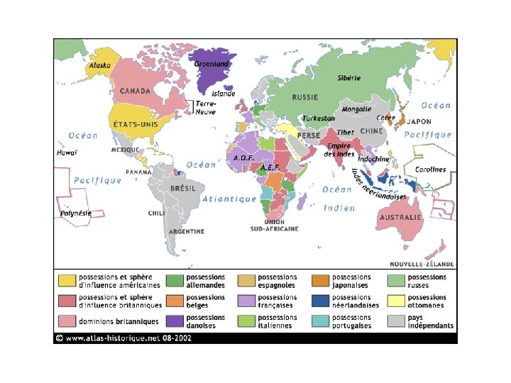 Les pays européens avaient beaucoup de colonies - surtout la Grande Bretagne et la France. En Afrique il y avait seulement deux pays indépendants
