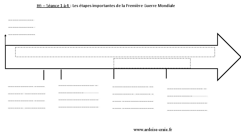 H 6 2 carreaux Séquence 6 : La Première Guerre Mondiale Séance 1 : Quelles sont les causes de la guerre? Voir fiche H 6 Séance 1: frise et carte par cœur Au début du 20è siècle, les pays européens sont en rivalité. Le 28 juin 1914, l'archiduc autrichien François Ferdinand est assassiné à Sarajevo par un Serbe qui refuse la domination autrichienne. L’Autriche déclare la guerre à la Serbie. La Russie déclare la guerre à l'Autriche pour aider la Serbie. Le système des alliances se met en place. La France entre en guerre contre l'Allemagne le 3 août 1914. www. ardoise-craie. fr
