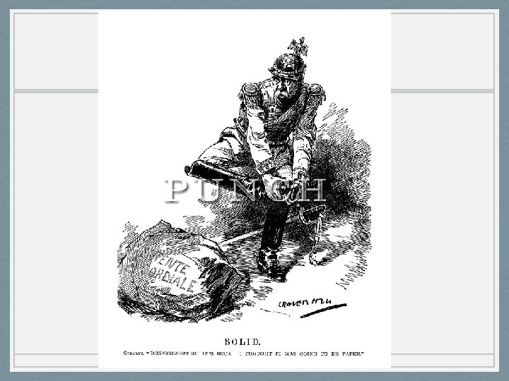 La deuxième crise marocaine cont. . . • Les Britanniques ont considéré cette action comme une menace. Ils avaient peur (avec la France) d’un coup allemand à Agadir, qui affecterait les routes maritimes de la GB. • Le premier ministre britannique, David Lloyd George a fait un discours en disant qu’il ne permettra pas aux Allemands d’affecter les intérêts britanniques = une affrontation angloallemande. • Finalement, en négociant, l’Allemagne a accepté deux petites parties du Congo. • Les résultats: - Plus de tension - Un autre échec de Weltpolitik selon le peuple allemand - Le rapport entre la GB et la France fortifié
