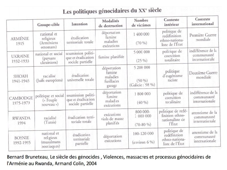 Le phénomène génocidaire Ce phénomène, qui marque toute l'histoire du XXe siècle, apparaît avec la première guerre mondiale. 'Génocide' : (terme apparu en 1945) Calque de l’anglais genocide. Composé de géno-, du grec ancien γένος, génos ( « race » ) et -cide du latin caedo ( « tuer » ) : « meurtre d’un peuple » . Extermination systématique d’un groupe humain (national, ethnique ou religieux).