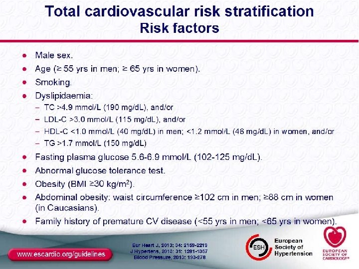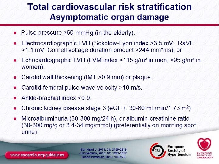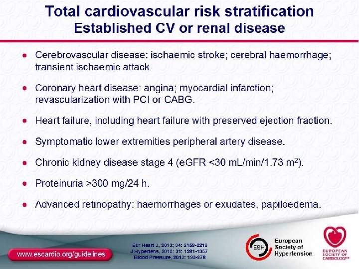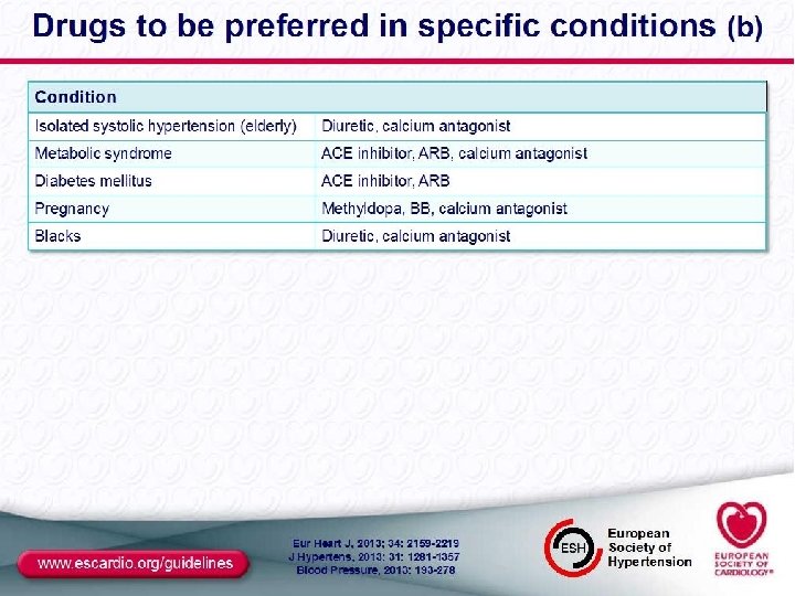 2013 ESH/ESC Guidelines for the management of arterial hypertension Hypertension treatment in the elderly Clinical scenario Recommendations Elderly patients with SBP ≥ 160 mm. Hg • Reduce SBP to 140 -150 mm. Hg Fit elderly patients aged <80 years with initial SBP ≥ 140 mm. Hg • Consider antihypertensive treatment • Target SBP: <140 mm. Hg Elderly >80 years with initial SBP ≥ 160 mm. Hg • Reduce SBP to 140 -150 mm. Hg providing in good physical and mental condition Frail elderly • Hypertension treatment decision at discretion of treating clinician, based on monitoring of treatment clinical effects Continuation of well- tolerated hypertension treatment • Consider when patients become octogenarians All hypertension treatment agents are recommended and may be used in elderly • Diuretics, CCBs, preferred for isolated systolic hypertension SBP, systolic blood pressure; CCB, calcium channel blockers. The Task Force for the management of arterial hypertension of the European Society of Hypertension (ESH) and of the European Society of Cardiology (ESC) - J Hypertension 2013; 31: 1281 -1357 Medical Education & Information – for all Media, all Disciplines, from all over the World Powered by