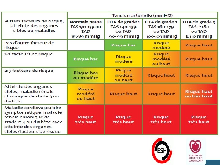 Atteinte des organes cibles Cœur HVG Angine de poitrine ou IDM Insuffisance cardiaque Cerveau AIT ou AVC Rein IR chronique Vaisseaux Artériopathie des MI Œil Rétinopathie hypertensive