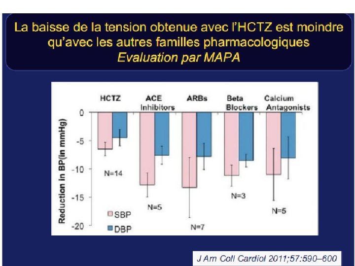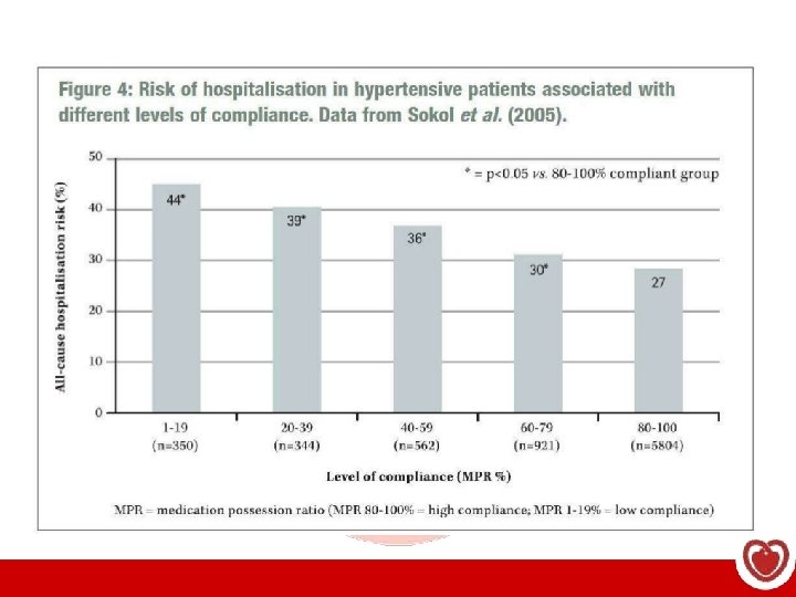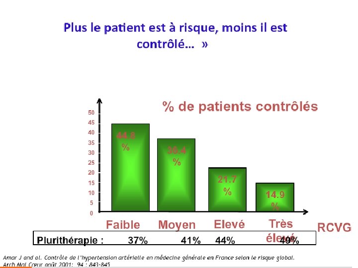 Le plus grand paradoxe de l’HTA: plus le patient est à risque, moins il est contrôlé % de contrôlés Etude sur 15 514 patients hypertendus traités 44. 8% 36. 4% 21. 7% 14. 9% faible moyen élevé Risque très élevé CV Amar J and al. Contrôle de l’hypertension artérielle en médecine générale en France selon le risque global. Arch Mal Cœur août 2001; 94 : 843 -845