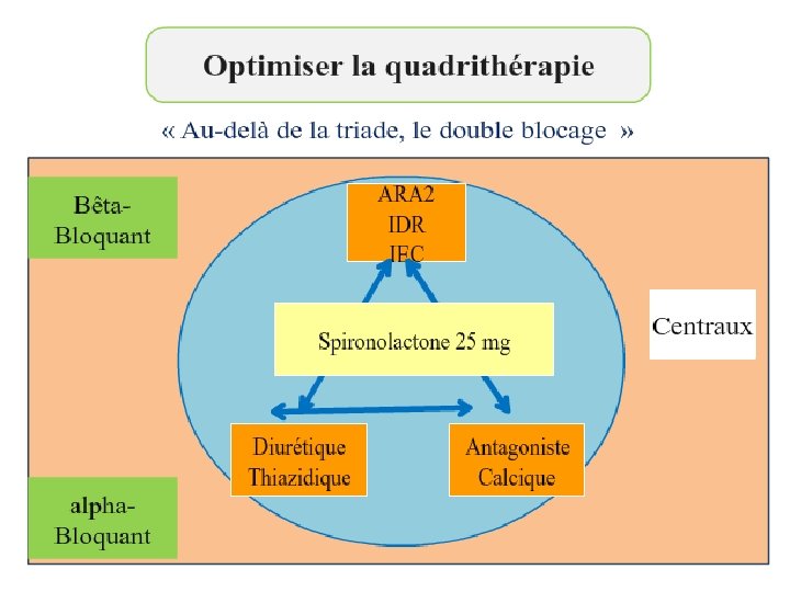 Combinaisons recommandeées divers antihypertenseurs Diuretiques ARA 2 -bloqueurs Inhibit. calciques IEC Preferred combinations Other possible combinations J Hypertens. 2007; 25: 1105– 1187. J Hypertens. 2009; 27: 2121 -2158.