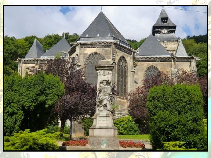 Clocher de l’église de Darnétal. Derrière ce bâtiment la nouvelle maison de la jeunesse de Rouen.