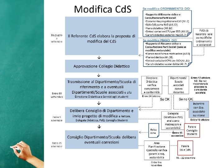 Premessa • Si ricordano che le macro – fasi temporali di massima dei diversi processi sono le seguenti Primavera-estate Inizio della Progettazione Cd. S (nuove attivazioni, modifiche significative Cd. S esistenti*) Autunno Riesami e Verifiche di conformità Inverno Deliberazioni CUN/ANVUR Primavera Affidamenti *A regime. Per l’a. a. 18/19 revisioni insieme alle modifiche di piano dei Cd. S entro settembre 2017. Organi Ateneo e trasmissione