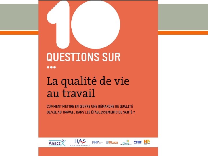 La QVT a-t-elle déjà été mise en œuvre ? OUI Sur des projets ciblés : refonte de l’accueil des patients, évaluation de la charge de travail… Sur des projets institutionnels : projet d’établissement Via la mise en place d’actions concrètes sur le travail : informatique, disponibilité des véhicules en HAD… Pour faire suite à des indicateurs sociaux négatifs…
