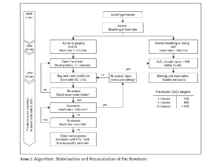 REANIMATION- B VENTILATION DIFFICILE « MR SOPA » Masque: taille, position, technique à 2 mains Repositionnement: position neutre, nez au zénith Ventiler 5 x et vérifier expansion thoracique/entrée d’air à l’auscultation Succion/aspiration: aspirer pharynx/nez si sécrétion Ouverture: Guédel, «jaw thrust» Ventiler 5 x et vérifier expansion thoracique/entrée d’air à l’auscultation Pression: augm. P. de 5 -10 cm. H O (max 35 -40 cm. H O) Anesthésiste: masque laryngé/intubation 2 Ventiler 5 x et vérifier expansion thoracique/entrée d’air à l’auscultation 30 sec. Au total Neo. Reviews Nov 2017, 18 (11) e 658 -e 664 2