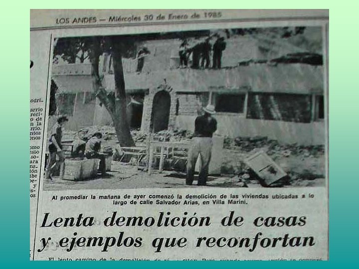 Propuesta de pedidos vecinales, apoyado por partidos políticos populares, para que los municipios encaren la reconstrucción de las viviendas a través del método de “ayuda mutua”, con o son estructura cooperativa, con uso de mano de obra local, facilitándose por vía de créditos de los materiales de construcción. Propuestas de autogestión en la construcción a partir del uso de materiales provinciales(Mendoza tiene dos fábricas de cemento provinciales subutilizadas, arena, ripio, hierro, etc) con herramientas e instrumentos facilitados por los municipios, abonando los costos en una cifra no mayor del 20% dl ingreso del jefe de familia mensual. El método incluye autorización para ser exceptuados de ciertos trabajos a fin de dedicarlos la reconstrucción