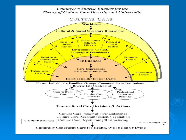 LA RELAZIONE INTERCULTURALE IN AMBITO SANITARIO Madeleine Leininger 3 punti del pensiero Ø La Teoria della Diversità e dell’Universalità della assistenza culturale (Culture Care) Ø Modello del sole nascente Ø Metodo dell’etnonursing