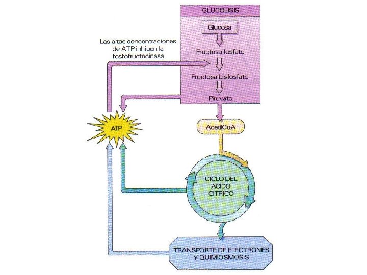 El ciclo del ácido cítrico n n La molécula de glucosa se degrada completamente una vez que las dos moléculas de ácido pirúvico entran a las reacciones del ácido cítrico. Este ciclo puede degradar otras sustancias que no sean acetil-co. A, como productos de la degradación de los lípidos y proteínas, que ingresan en diferentes puntos del ciclo, y se obtiene energía.
