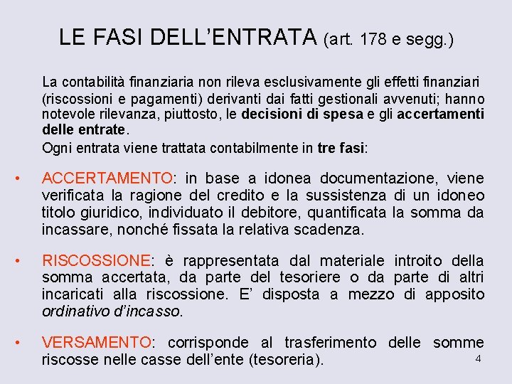 LE FASI DELL’ENTRATA ACCERTAMENTO RISCOSSIONE VERSAMENTO 3