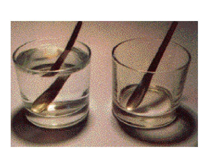–Avez-vous déjà remarqué qu'une petite cuillère plongée dans un verre d'eau paraît cassée. . .