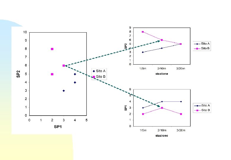 Perchè. . . n n n E’ impossibile visualizzare efficacemente insiemi di dati multidimensionali complessi Un’analisi multivariata è più economica e più efficiente di n analisi univariate Gli assi dello spazio ridotto di solito rappresentano gradienti ambientali interpretabili Se si effettuano anche test statistici, si evitano i problemi legati alle comparazioni multiple Concentrando l’attenzione solo su alcuni assi si evita di considerare il “rumore”