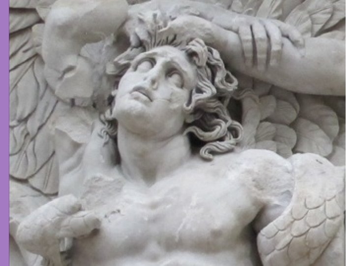 Dalla parte opposta l’altro ragazzo sta per liberarsi dalle spire del serpente marino inviato da Poseidone. Sono messi in relazione la simmetria geometrica e l’asimmetria emotiva. Malgrado la forte drammaticità il processo di idealizzazione non riesce ancora a cancellare la bellezza dei corpi.