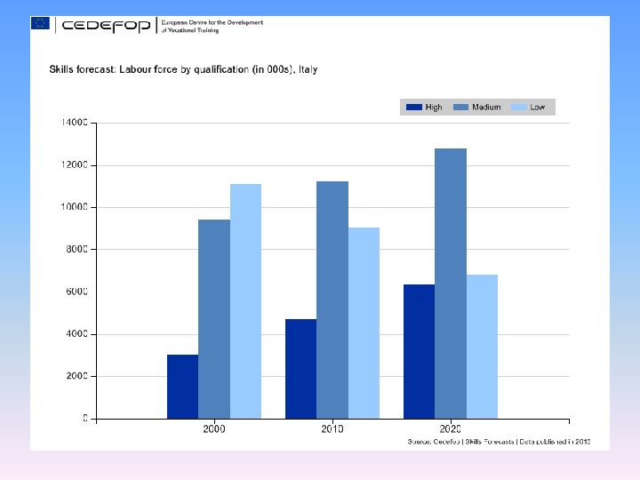 Nel 2011, l’ESL in tutta l'UE era pari, in media, al 13, 5%[1]. Ciò significa che 5. 600. 000 individui di età compresa tra 18 -24 hanno lasciato gli studi e la formazione precocemente, conseguendo al massimo l'istruzione secondaria inferiore. In Italia il dato si attesta al 2011 sul 18, 2% con 800. 000 giovani di età compresa tra i 18 e 24 anni che hanno lasciato gli studi e la formazione precocemente. Le donne hanno un tasso di ESL di circa quattro punti inferiore agli uomini. (dato del 2011) [1] Il dato per il 2012 è pari a : 12, 8%