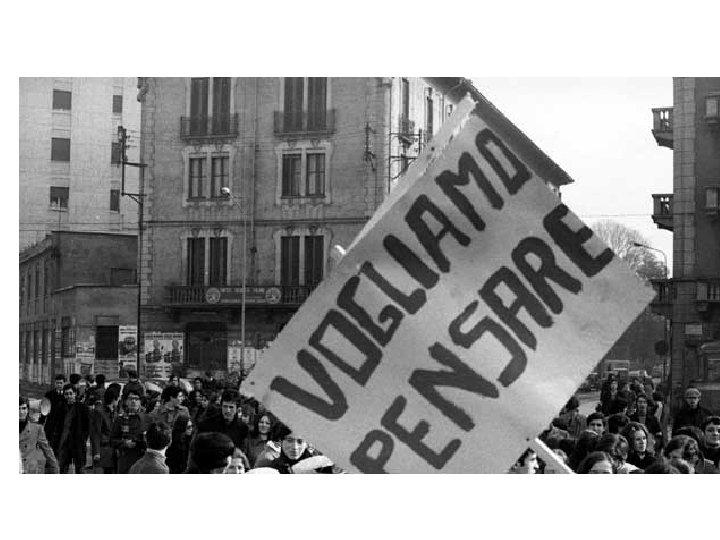 Che ne sarà della lotta? • Adorno parla della necessità di resistere. Marcuse teorizza un allargamento della base, dal proletariato in senso marxista (ormai integrato) a tutti i “reietti”, gli “stranieri”, gli “sfruttati”, i “perseguitati”, i “disabili”, ritenendo di trovare in costoro una nuova base rivoluzionaria. Risultato… • LA RIVOLTA……. resistere……