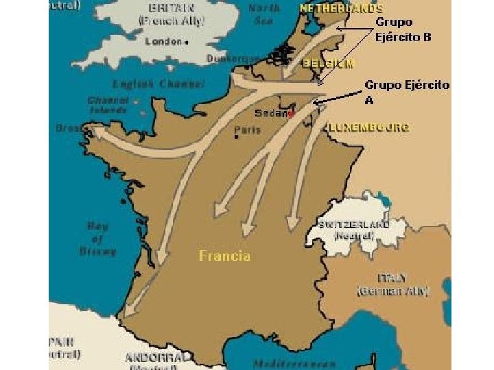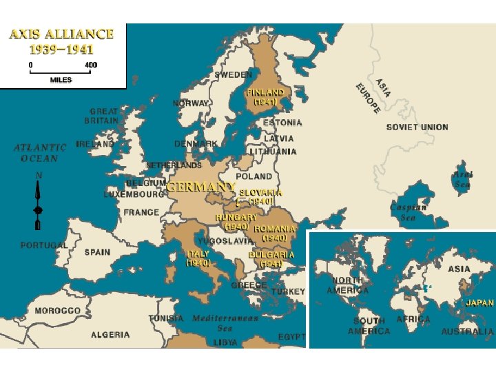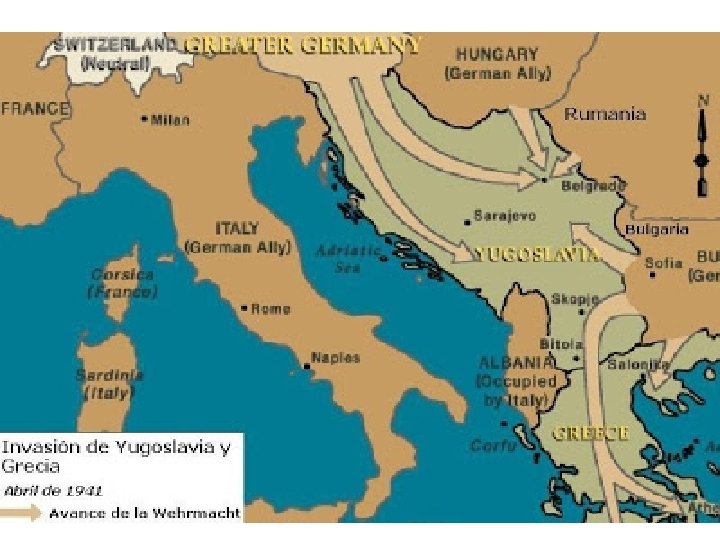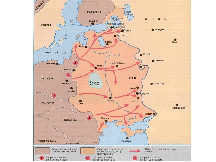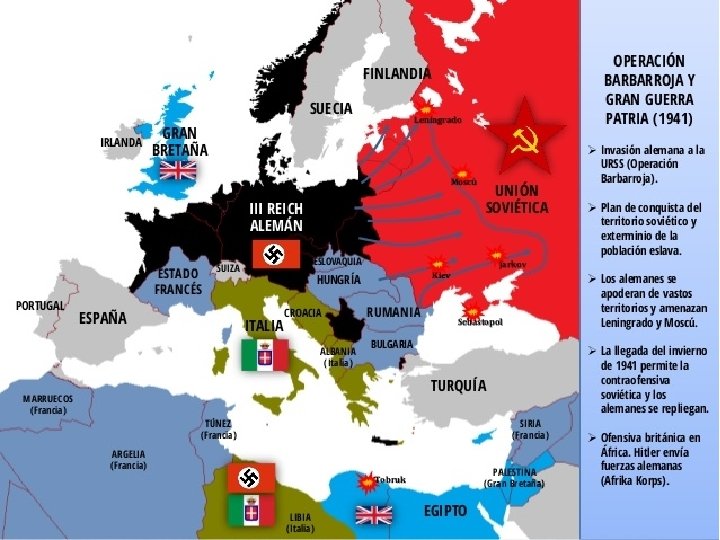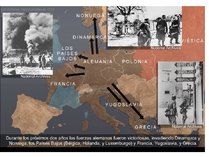 Ofensiva alemana: 1939 -1941 1939. • Polonia 1940. • Noruega • Dinamarca 1940. • Holanda • Bélgica • Francia 1940 • Italia se incorpora • Frente en África 1940 -41 Hungría, Rumania Bulgaria y Finlandia se alían con Alemania 1941 • Yugoslavia • Grecia